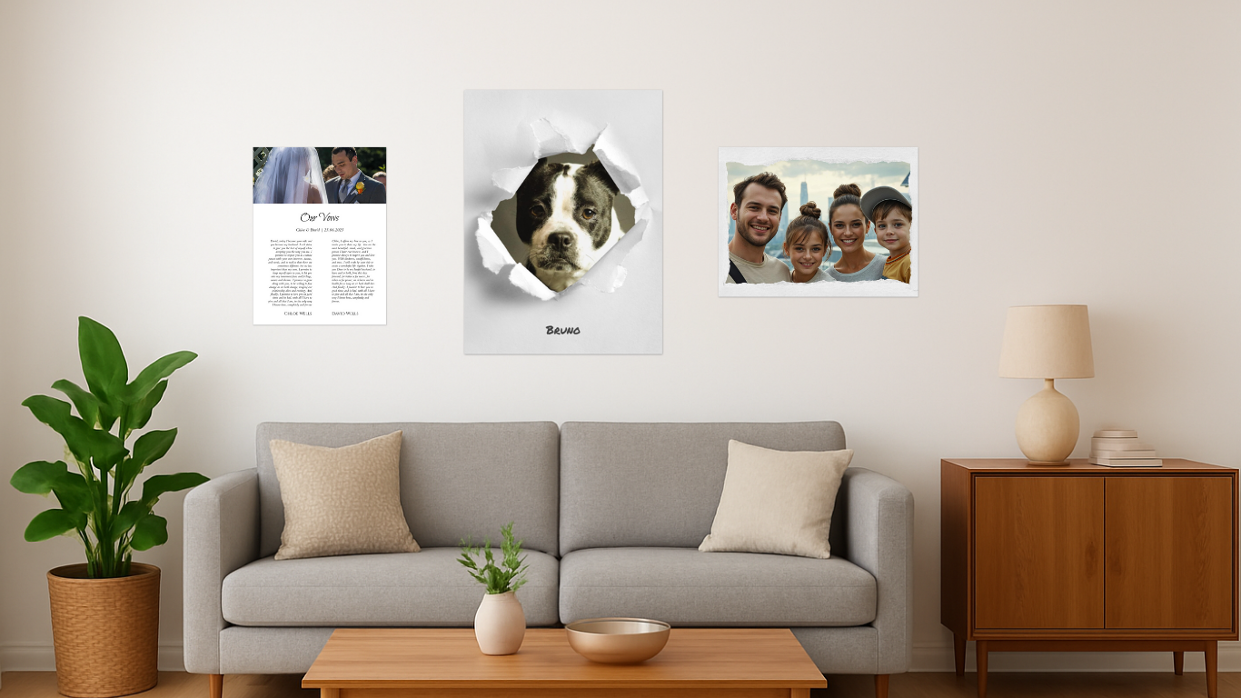 At GiftMyPrint, we turn your favourite photos into beautifully personalised aluminium prints designed to celebrate life’s meaningful moments. From pets and family memories to weddings, anniversaries, and milestones, each piece is crafted to feel thoughtful, modern, and made to last. Simply upload your image, personalise the details, and create wall art that’s uniquely yours — don’t moan, make it your own.