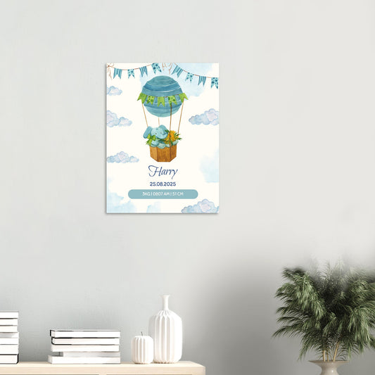 Personalised Baby Elephant Birth Details Aluminium Print