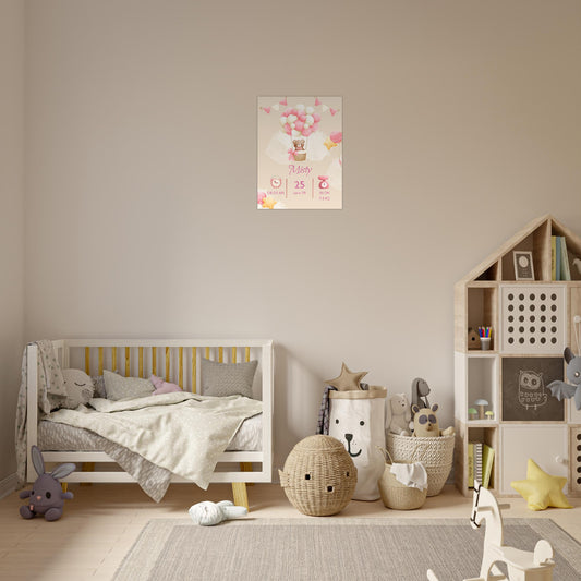 Personalised Baby Bear Birth Details Aluminium Print