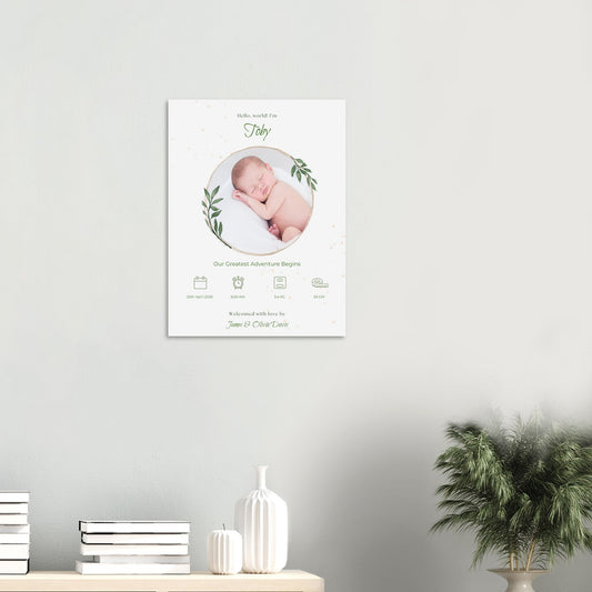 Personalised Newborn Baby Photo Birth Details Aluminium Print